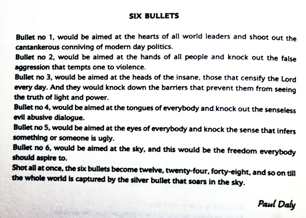 This is a very rare book indeed, called Six Bullets. The title is taken from a poem by Paul Daly. The book is the work of The Fairfield Writers and David R. Morgan.